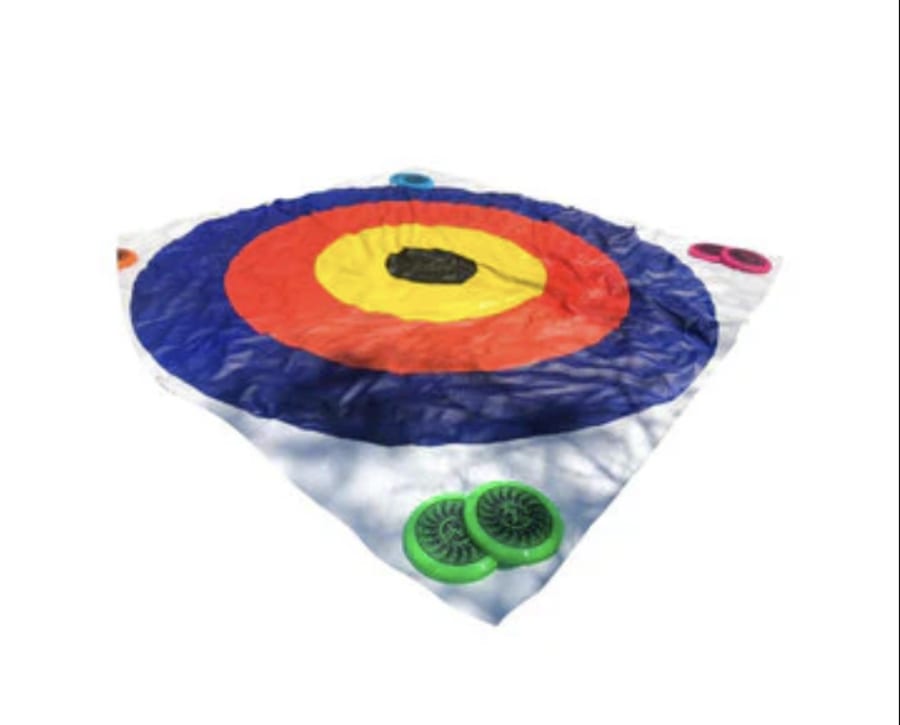 Bring instant fun to any event with the Giant On Target. This oversized Frisbee Bullseye lawn game is built for all ages. The board measures 10' x 10' and comes with eight high-visibility frisbees (two of each color). Easy to set up. Perfect for parties, team-building, school events and backyard play. 🥏👨👩👧👦