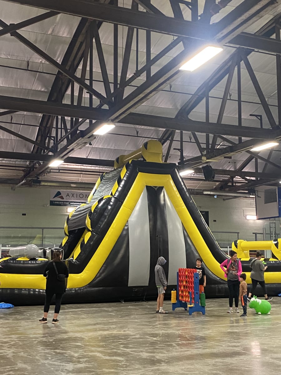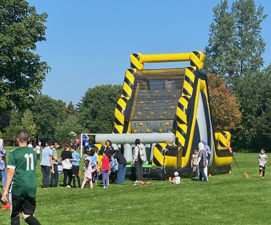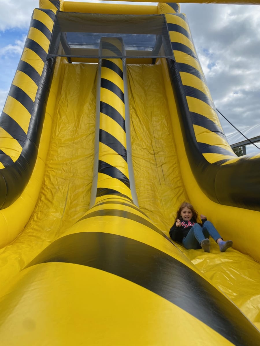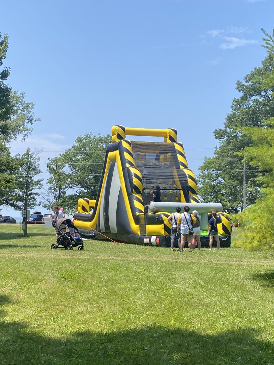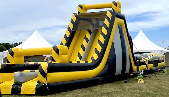 The High Voltage Wall Slide delivers heart-pounding fun for groups and events. This massive 19' wall with a dual-lane slide lets riders race to the top and fly down. It’s a show-stopping attraction for school fairs, fundraisers, team parties, and community events. TSSA Licensed for public events, this inflatable combines height, speed, and safe design for ages 7+.